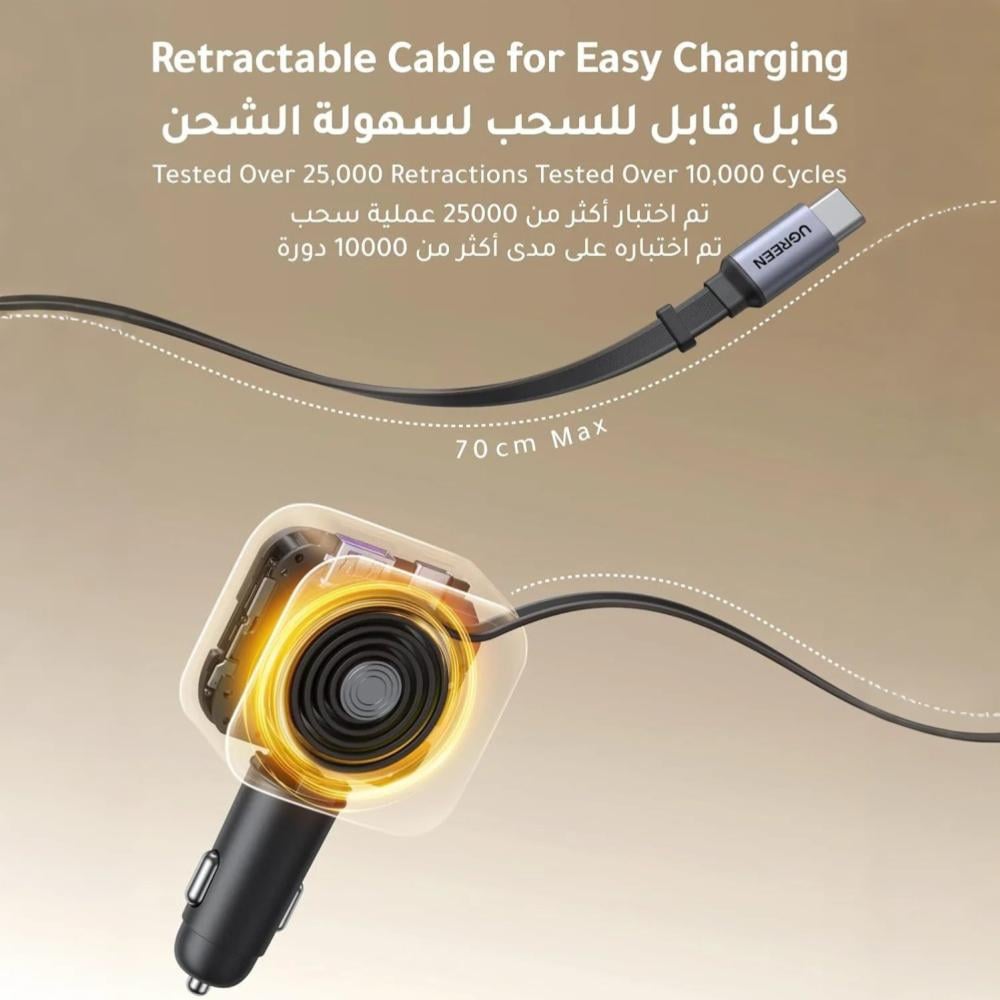 UGREEN 69W Car Charger مع كابل USB-C مدمج
